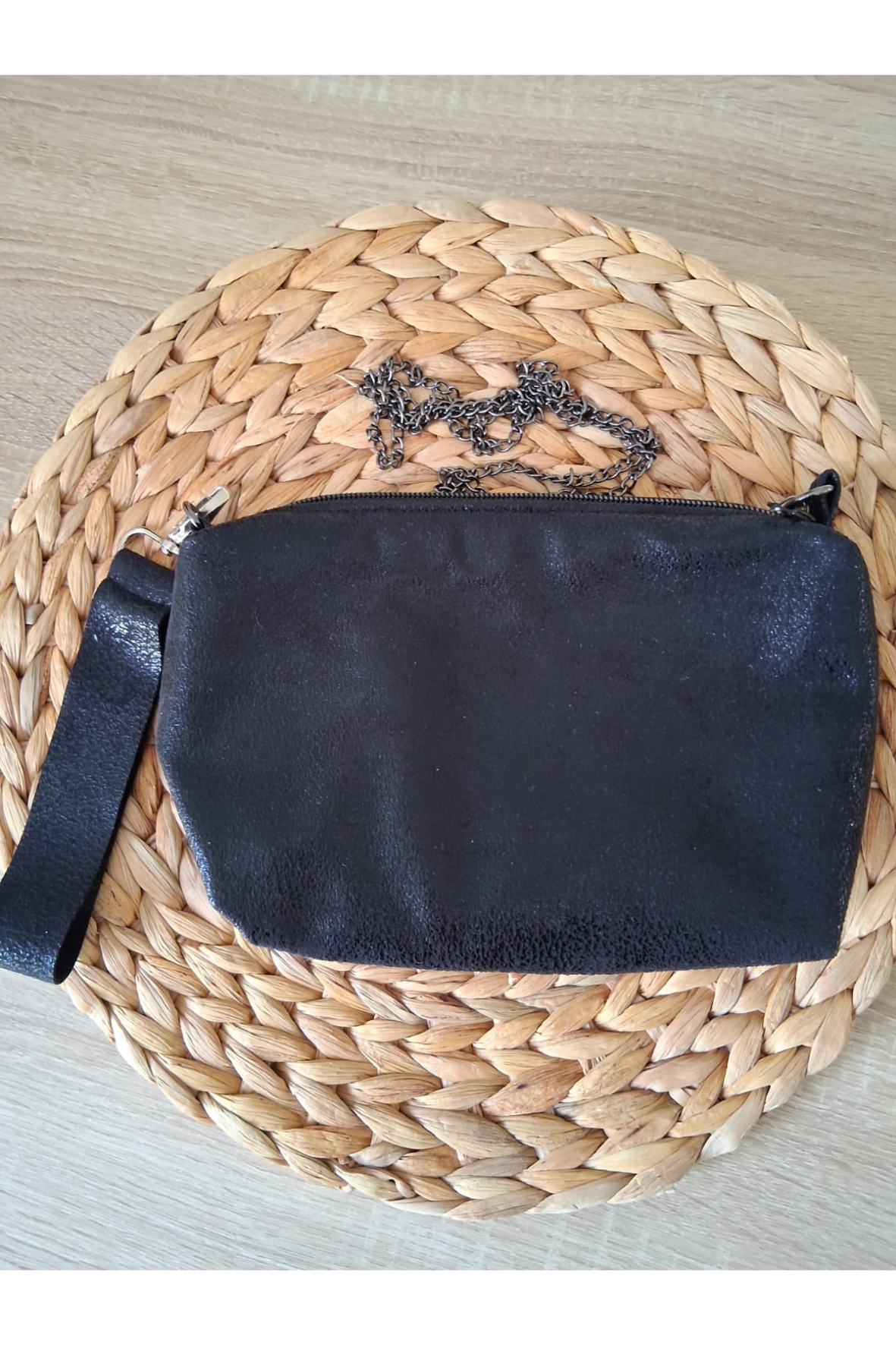 Il se porte à la main ou en bandoulière grace à une petite chaine.